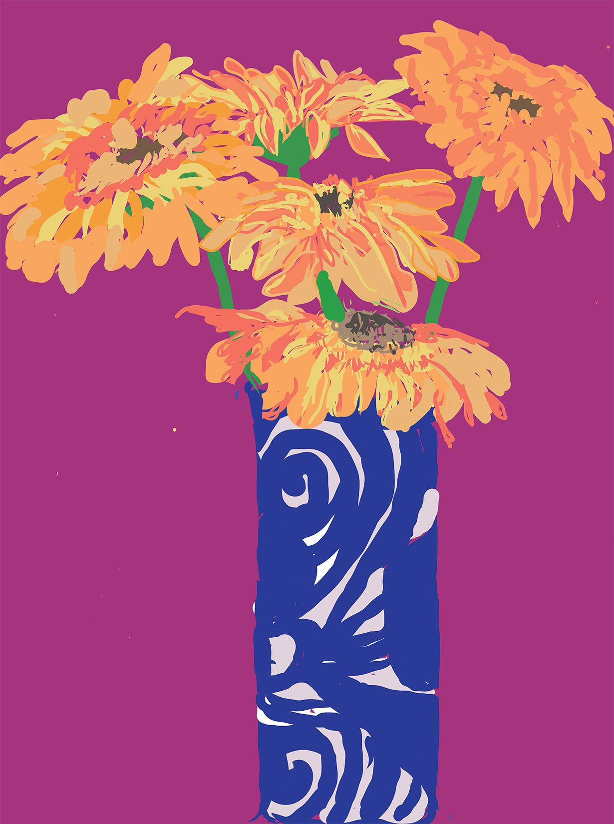 Flowers make me happy. Living in dark times, my paintings are floral meditations.